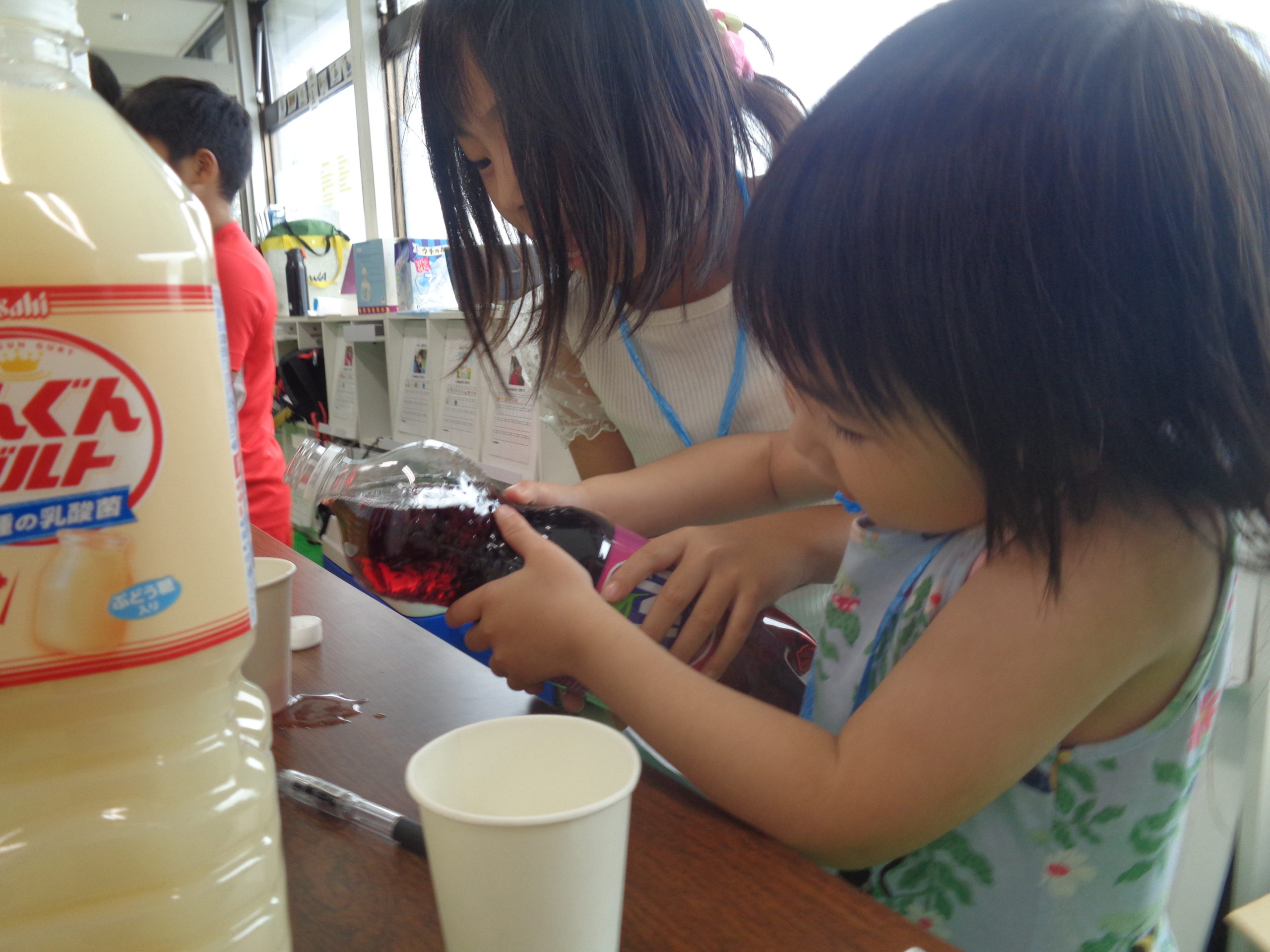 フランクフルトや焼きそばを作ったり、ジュース屋さんや型抜き屋さんなどの定員さんを子ども達が交代しながらお祭りを楽しみました。