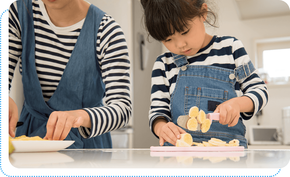 施設側で提供するだけでなく、クッキング活動としてその日のおやつをみんなで手作りすることもあります。